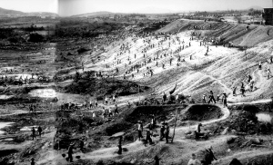 1958年4月27日开始,每天有上万人,集结在距石碌镇约5公里的地方,没有大型机械,他们靠肩膀,靠双手,硬是在石碌河上游挖出一个石碌水库。