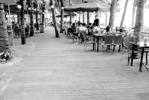 10月25日,三亚大东海景区,人们在海边享受清洁的创卫成果。