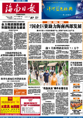 海南日报 头版 001 2009-10-271 2009年10月27日 星期二