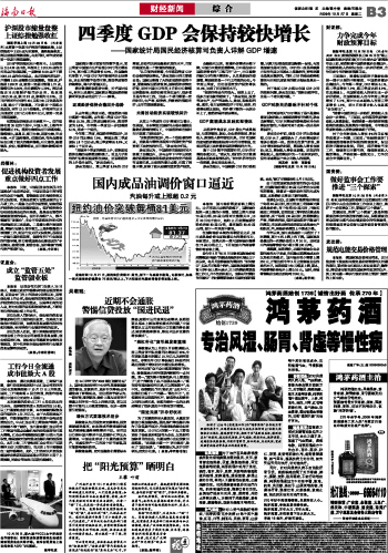 海南日报 财经新闻 011 2009-10-271 2009年10月27日 星期二