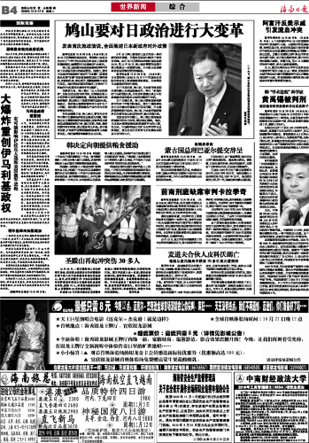 海南日报 世界新闻 012 2009-10-271 2009年10月27日 星期二