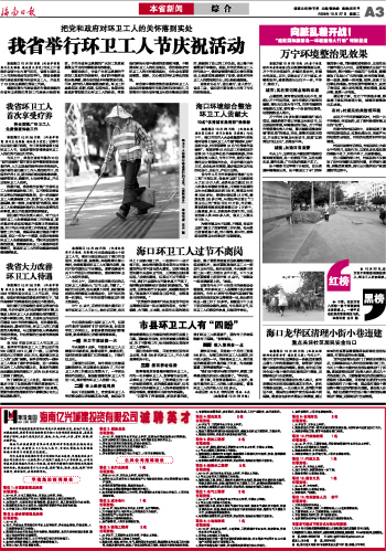 海口环境综合整治环卫工人贡献大