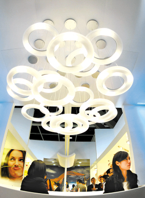这是一家展台前悬挂的新颖吊灯(10月27日摄)。10月27日,为期4天的亚洲最大灯饰展———香港国际秋季灯饰展在香港会议展览中心开幕。本届展会共有来自全球31个国家和地区的1788家企业参展,参展商数目破历届纪录,较去年上升14%。 新华社记者 宋振平 摄
