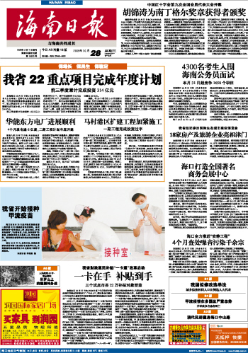海南日报 头版 001 2009-10-281 2009年10月28日 星期三