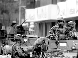 | 士兵在喀布尔市中心发生枪战的地点巡逻。 新华社发