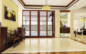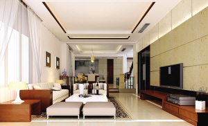 设计说明:本方案使用大理石、实木等,引用东南亚的浑厚大气的装饰氛围,并结合简洁中式丰富多变的线条来营造富有稳重华丽的居住空间。