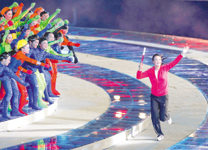 网球运动员彭帅闭幕式上传递“接力棒”。 本报特派记者 宋国强 摄