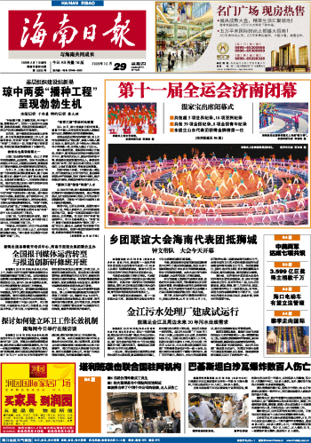海南日报 头版 001 2009-10-291 2009年10月29日 星期四