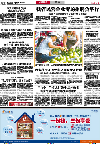 海南日报 本省新闻 002 2009-10-291 2009年10月29日 星期四