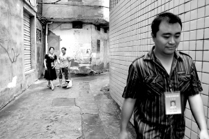 海口美兰区推行“交叉检查、不断走动”的无缝隙巡查方式。10月18日,新风里居委会工作人员在小巷内巡检。