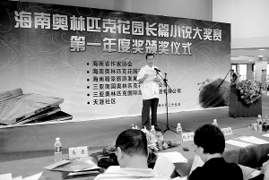 海南省作家协会、海南奥林匹克花园有限公司、海南骏豪旅游发展有限公司、三亚南国奥林匹克花园有限公司、三亚奥林匹克国际高尔夫投资有限公司与天涯社区,联袂举办“海南奥林匹克花园长篇小说大奖赛”,并于2008年5月25日向社会发布公告。公告对参赛作品的题材、字数、创作出版时间和评奖程序等均作出了具体的规定。
