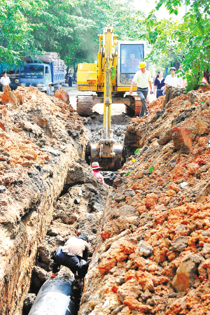 今天上午11时许,记者路过正在铺设自来水管的登仙路段工地时看到,一部挖掘机正在现场作业。突然周围人群一阵骚动,“出事了!有人被压在渠道下面了!”只见一人多深的管道里,一名中年男子下半身被泥土压住,已经失去知觉,头歪向一侧。两名男子立即赶来抢救,后来又有一名男子下到渠道下帮忙。3人拉的拉,挖的挖,最后在挖掘机的帮助下才将失事男子拉出来。当众人将男子拖到地面,赶到现场的医护人员为其检查时,却发现他已没了气息。