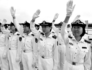 10月30日,海军女官兵向执行护航任务的战友挥手告别。 当日,中国海军第四批护航编队从浙江舟山某军港起航,赴亚丁湾、索马里海域执行护航任务。 新华社记者 杨志刚 摄