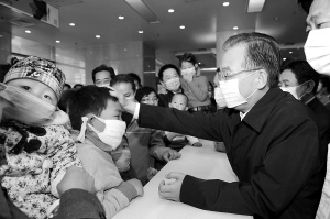 10月31日,中共中央政治局常委、国务院总理温家宝到北京儿童医院,亲切看望慰问医护人员和正在就诊的患者,考察甲型H1N1流感防控工作。 新华社记者饶爱民摄