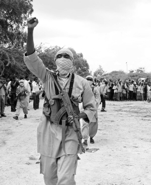10月30日,索马里反政府武装“伊斯兰青年运动”武装人员在首都摩加迪沙参加反对以色列的示威活动,支持巴勒斯坦人并抗议以色列“亵渎”阿克萨清真寺。 新华社发