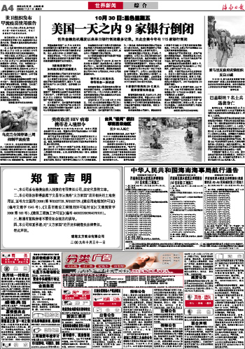 海南日报 世界新闻 综 合 004 2009-11-011 2009年11月01日 星期日