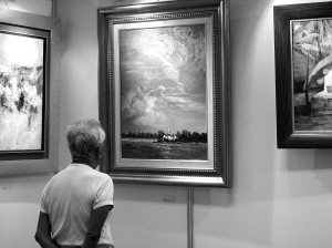 刘贵宾的油画《大榕》和《村口》展示了一个中国著名油画家厚实写实功夫和艺术再现的良好功力,是这次展览备受瞩目的作品。陈显栋、李东东、蔡蔚、马杰、陆运章为代表的抽象风格画作也占据了不小的篇幅,且具有很强的视觉冲击力;谢耀庭、王建顺、刘运良、李生琦、周铁利、梁峰这样功力深厚的具象派,他们的作品也具有撼人心魄的力量,王家儒、周国富、牧之率性涂抹的“印象派”,也引起观者强烈的兴趣。国画作品有裘缉木独创一格的“没骨画”,也有李涵、郭显中的大写意花鸟,曾祥熙、蔡於良、符史雄等为代表的南派山水,罗继贞、卢向玲、方宝价等的南派花鸟画等,这让整个画展异彩纷呈,好评如潮。英国DIM SUM ART 美术评论家Caroline在亚洲工作了25年,如今在新加坡做推动亚洲艺术的工作。观看过东方国家的艺术作品无数次的她,常给各国艺术家写评论文章,是一位资深的美术评论家和画家。在观展现场,这位50多岁的美术评论家对海南画家作品大为惊叹,连连说几次“很激动很震撼!”她说,想象不到中国的油画家将起源于西方的油画画得那么棒,中国油画中显示的东方精神给人很强烈的新鲜感,对热带海南风物的表现让人产生了立即想到海南岛写生的愿望。她在画展中流连,与到场的新加坡艺术家分享她愉悦的心情。