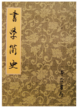 祝嘉所著《书学史》,解放前后曾有多种版本。海口市书协副主席戴文案头摆放的《书学史》系上海教育书店1947年首版本,32开,封面有吕凤子行书题名,“全书共分14章,上自唐虞以前,下至晚清末年。史料翔实,搜罗详尽,不但有‘史’之特征,而且具备通史的结构体系,是中国书学史上的开山之作。”