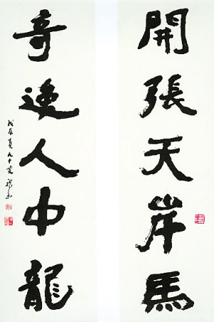祝嘉注意书法作品用笔的力度,他在挥毫时,注意用笔的疾与涩,让自己全身发力,进而使得书法作品尽显力到,苍古雄浑。