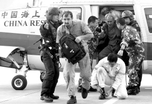 37人遇险被救 1日5时许,伊朗籍杂货船“ZOORIK”轮在浙江舟山绿华山岛北面触礁。截至目前,遇险的37名船员和家属已全部获救,浙江省海上搜救中心和浙江海事部门现正全力组织相关海上救援力量,做好该轮触礁后排险工作。 图为被救伊朗船员走下救助直升机。新华社发