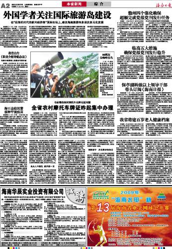 海南日报 本省新闻 002 2009-11-021 2009年11月02日 星期一