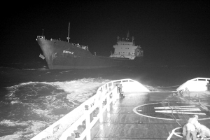 今天凌晨0时50分,“南海救131”轮抵达事发地,在靠抵遇险船后,“南海救131”轮迅速运送数名救助人员携消防器材登上遇险船参与灭火救助,经过半个小时的扑救,船上大火被扑灭,救助人员继续清理火场。当时因失去动力的遇险船已漂航至琼州海峡中水道,影响了航道航行安全。于是,“南海救131”轮救助人员决定将其拖至海安安全水域。但当时海上风高浪急,东北风6至7级,浪高2至3米,增加了轮船接拖的难度。救助人员克服重重困难,于今天清晨5时接拖成功,并于中午13时许将遇险船安全拖抵海安港口。