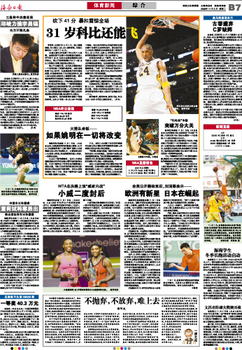 海南日报 体育新闻 015 2009-11-031 2009年11月03日 星期二
