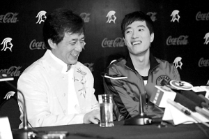 | 成龙(左)刘翔一同出现在媒体面前 |