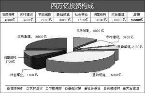 网友“艾宾浩斯”指出:“拉动经济的三驾马车,大家都知道,眼瞧着‘出口’日渐疲软,祭出‘4万亿’投资这一招适时地给经济发展补充了动力,避免了断档熄火。”网友“iambug”补充说道,4万亿的投资,说白了就是一次政府大采购,即中央政府通过财政政策向市场注入资本,激活生产、消费、金融整个链条。既然是注资,就有个投向问题,据有关部门透露,不少都投向了基建,既解燃眉之急,又固经济根基,一举两得。