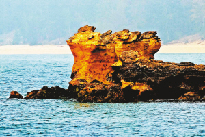 “一半是火焰,一半是海水”。位于儋州峨蔓港的“龙门激浪”,是100万年前火山喷发后在海岸线形成的火山岩奇观。北风掀浪,撞于石门,鸣声如鼓,回响不绝。虽然经过100万多年海水的冲刷,但从火山石千奇百怪的形态和大面积的扩散、分布中,还是能明显感觉到火山爆发时,岩浆迸裂和大规模流动的痕迹,令人感叹地质运动中大自然的神工和壮观。