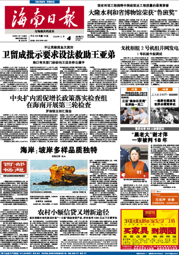 海南日报 头版 001 2009-11-041 2009年11月04日 星期三