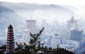 11月4日傍晚,陕西省延安市城区出现平流雾景观,建筑在雾中若隐若现,宛如海市蜃楼。延安市实施退耕还林10年来,生态环境得到明显改善,云雾经常出现在陕北的山山峁峁。 新华社发