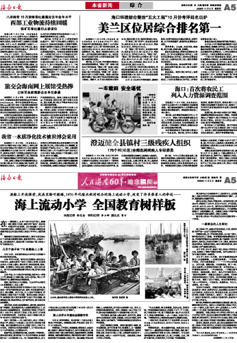 陵水海上流动小学已经成为当时全国教育的一个样板。