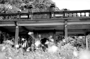 | 被杂草“淹没”的“敦笃亭”。 本报记者 张杰 摄 |
