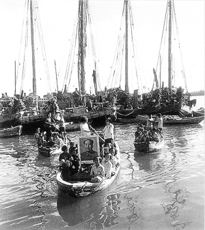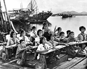 | 一九七O年,陵水新村海上流动小学上课的情形。 吴元俊 摄 |