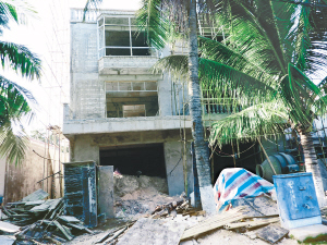 | 鹿回头村正在抢建的违章建筑。 本报记者 刘贡 摄 |