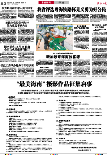 海南日报 本省新闻 002 2009-11-071 2009年11月07日 星期六
