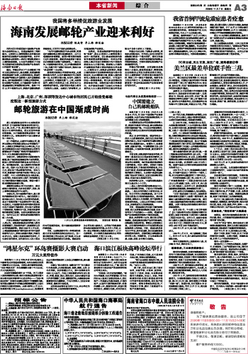 海南日报 本省新闻 003 2009-11-071 2009年11月07日 星期六