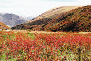 峡谷里的红叶已经开始妖冶起来,在冰雪世界里触目惊心。