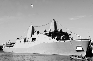 由世贸残骸建造 “纽约”号军舰正式服役 “纽约”号军舰使用了7.5吨世贸中心“双子塔”遭受“9·11”恐怖袭击后遗留的钢材。 11月7日,“纽约”号军舰正式加入美国海军编队服役。 新华社发