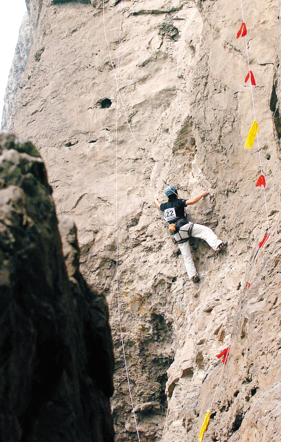 全国山地运动会男、女自然岩壁攀岩比赛在贵州省遵义市桐梓县举行