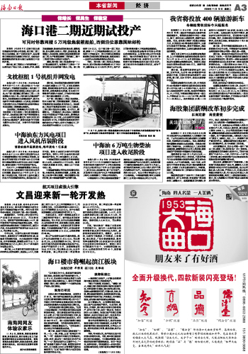 在海口港二期集装箱深水码头迎来了中国海运大型集装箱船舶“新长沙”号