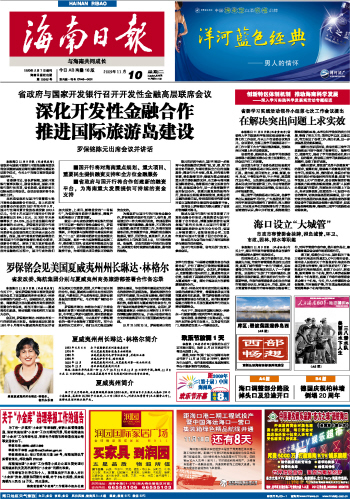海南日报 头版 001 2009-11-101 2009年11月10日 星期二