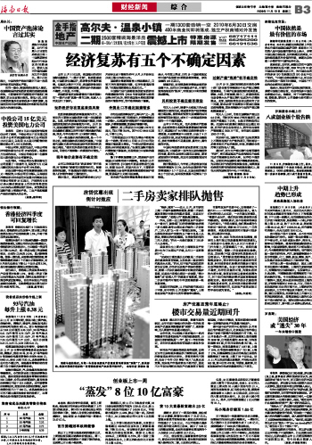 海南日报 财经新闻 011 2009-11-101 2009年11月10日 星期二