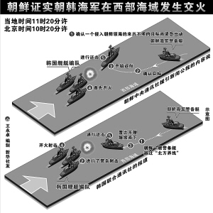 朝方说,当地时间11时20分左右,警备艇确认目标后开始返航。就在此时,韩国舰艇编队尾随朝鲜警备艇并首先开火。朝鲜警备艇果断还击后,韩国舰艇“匆忙逃回自己一侧海区”。