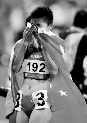 女子5000米决赛一开始,第十一届全运会冠军薛飞(见下图,新华社发)在最后一圈落后50多米的情况下,发挥冲刺优势,奋力追赶,连超印度和巴林选手,以16分05秒19的成绩夺得冠军。薛飞在赛后的新闻发布会上承认,全运会后状态不太好,一直处在调整中,但对能有这样的结果她表示“挺满意的”。