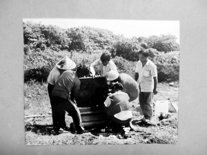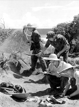 ①1970年代,广东省考古工作者和守岛战士在西沙甘泉岛上发掘唐、宋遗址。