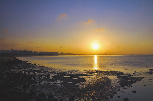 (业余组) 编号:Y1108005 拍摄地点:海口湾 入选理由:落日的光线,海岸沙滩呈现钢性质感。