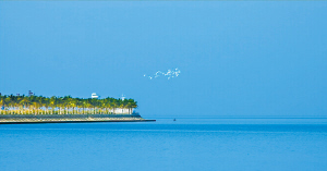 (专业组) 编号:Z1107002 拍摄地点:三亚 入选理由:候鸟正飞向海岸林木上空,宜居宝岛令人神往。