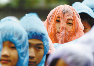 11月12日,重庆市渝北区回兴中学的同学们穿着雨衣到户外活动。 当日,重庆市遭遇一股强冷空气,秋雨伴随大风结束了前段时间秋高气爽的日子。记者从重庆市气象局获悉,重庆市大部分地区气温降至10摄氏度以下,不少市民穿上了厚厚的冬装。 新华社记者 陈诚 摄